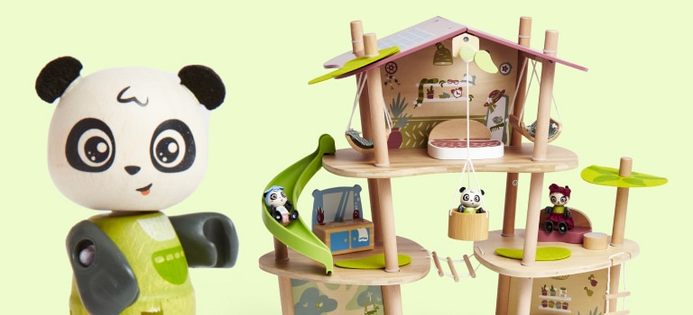 This set from the Green Planet Explorers range is crafted from sustainable bamboo, and comes with a variety of elements such as a fireplace, hammocks, a rope ladder and even a wheelchair lift. With a family of 4 pandas, you'll spend countless hours exploring a world filled with adventure - we're sure that you'll have fun learning about sustainability as you explore the endless wilderness with the Panda family. Develop fine motor skills, imagination, creativity and above all, knowledge on all things sustainable.