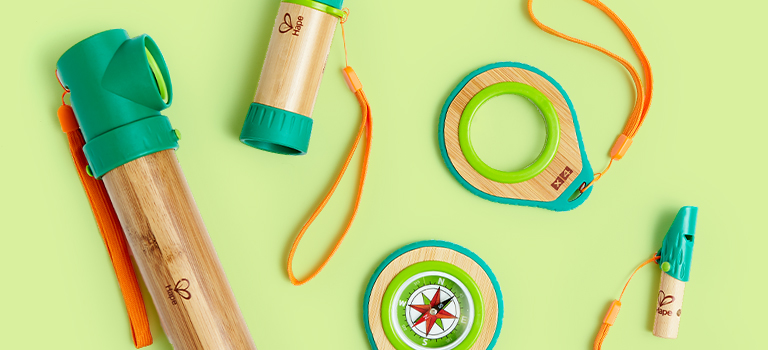 Pack up a picnic and head out into the fields or forest for an exciting day of discovery. This sustainably made magnifying glass and two-tone whistle is perfect for intrepid young explorers to investigate nature up close. Don’t forget to record what you find!
