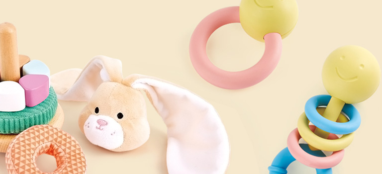 Roll this clever rattle away from you and it loops right back – a little like a boomerang. Easy for small hands to grasp, it has a pleasant-sounding bell inside.