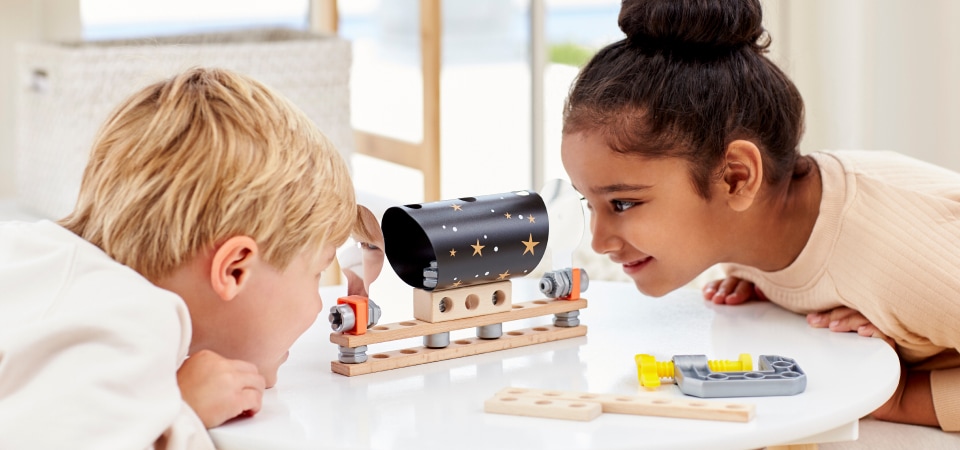 What will you see in the woods today? A bird? A bear? A goblin? Take a closer look at distant animals and plants with this 8x toy telescope. It’s perfect for encouraging kids to observe and identify birds and animals in the wild, while also enjoying physical exercise and fresh air.