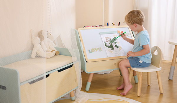 Transform your child's playtime with our fun, safe, and space-efficient bookshelf that doubles as a creative easel, sparking imagination and keeping books neatly organised.