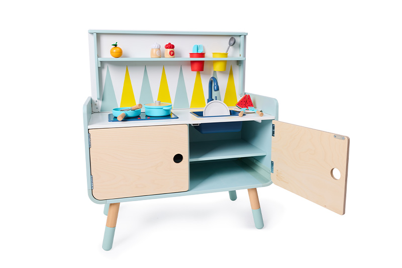 2-in-1 kitchen and storage to spark joy and creativity with immersive play, then stylishly stash away - safe, durable fun!