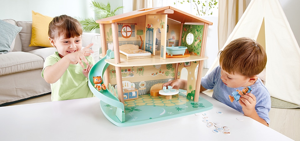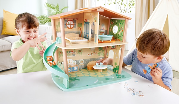 This set from the Green Planet Explorers range is crafted from sustainable bamboo and other eco-friendly materials that come together as a two-floor jungle house to teach your little eco-warriors all about recycling. Featuring a variety of elements such bed and bathroom aspects, as well as 18 garbage cards that need to be sorted into the correct recycling slot. With two tigers, you'll spend countless hours exploring a world of jungle fun - we're sure that you'll have fun learning about sustainability as you go on countless adventures with the Tiger family. Plus, your child will develop fine motor skills, imagination, creativity and above all, knowledge on all things sustainable.